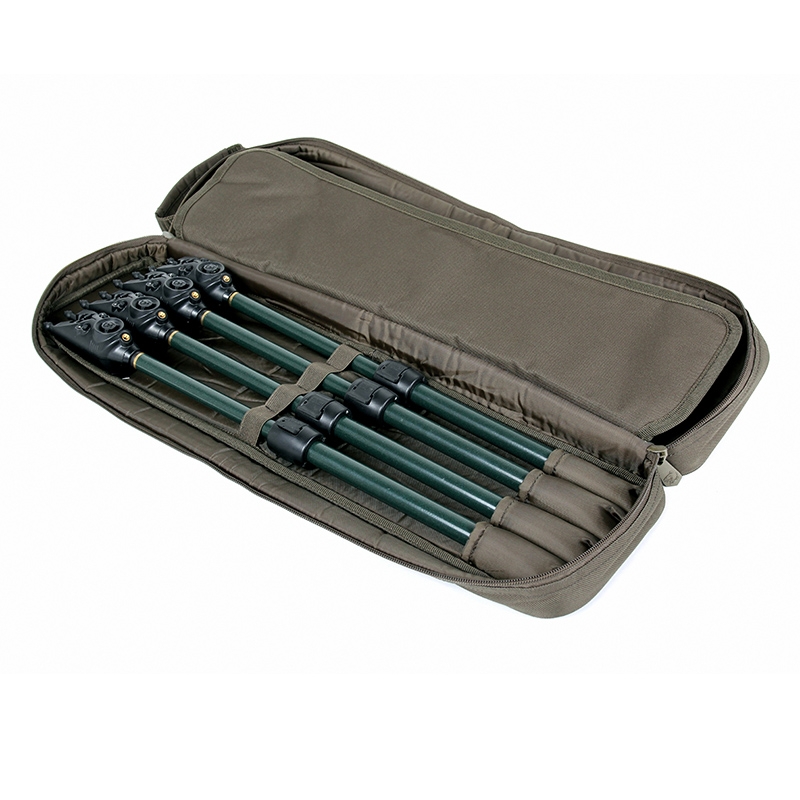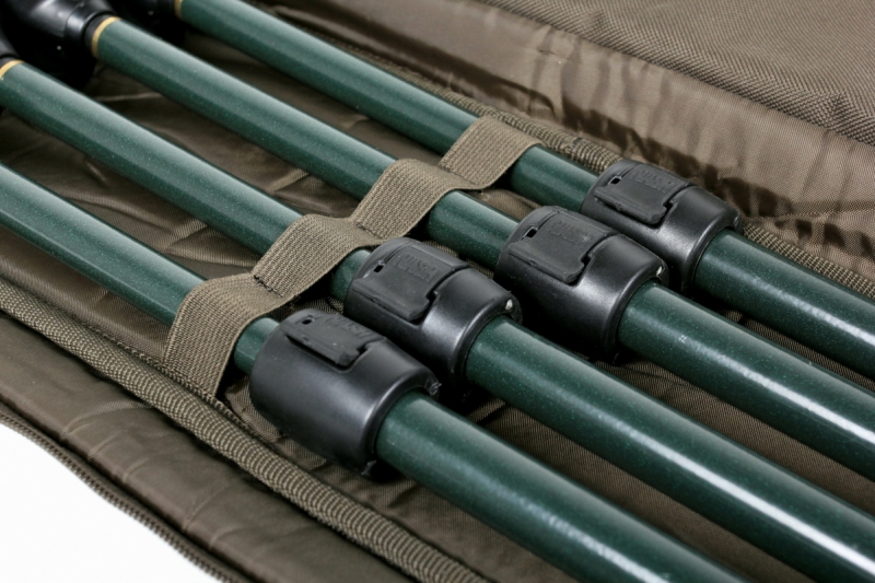 Akár 8 db bottartó tárolására alkalmas, elasztikus hurkokkal, és még a kapásjelzők is beleférnek. Háromoldalú cipzár és középső párnázott elválasztó.