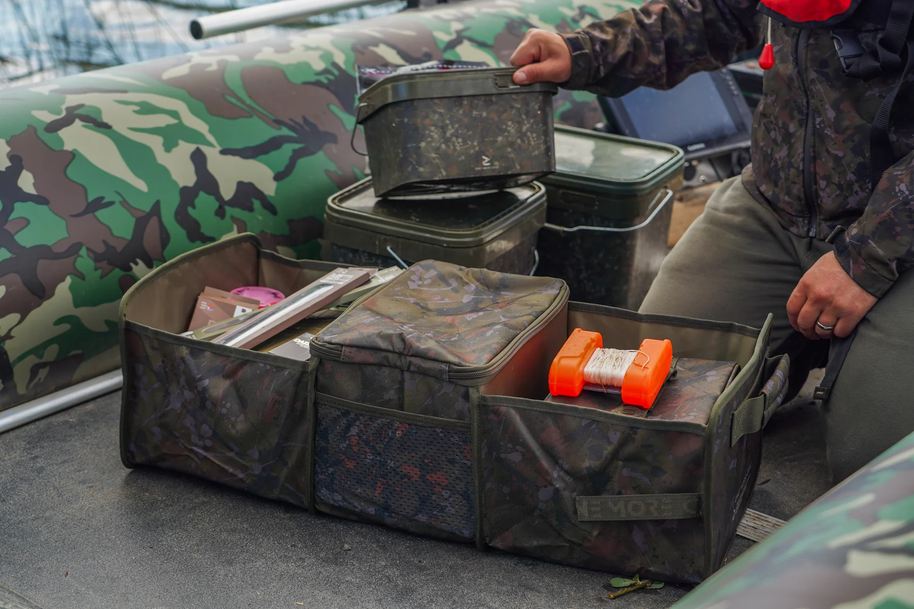 Az egyedülálló, összecsukható CONCERTINA 500D poliészter OMC Custom Splash Camo Design azt jelenti, hogy ez a tárgy a kompakt TÁROLÁSTÓL másodpercek alatt kinyitható és használatra kész, mint rendkívül praktikus sátor SZERVEZŐ. A RENDETLEN KOTTÓ könnyen szállítható munkaeszközként is tarthatja, így GYORSAN felemelheti a tárgyakat az ágyról a sátor aljára, vagy akár a csónakjában is tarthatja a létfontosságú alkatrészeket a tavon. A központi cipzáras rekesz még nagyobb sokoldalúságot és lehetőségeket biztosít a könnyen tisztítható TPU belső szövet megtartására.